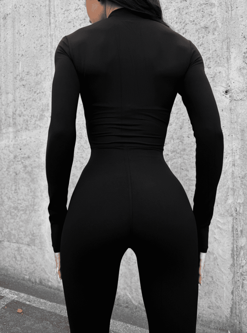 Gładki kombinezon to wysokoelastyczny kombinezon z długim rękawem i zamkiem błyskawicznym z przodu, wykonany z przewiewnej, szybkoschnącej tkaniny. Idealnie dopasowuje się do sylwetki, doskonale się rozciąga i nie uciska. Doskonale nadaje się nie tylko do uprawiania sportu, ale także na spacery.