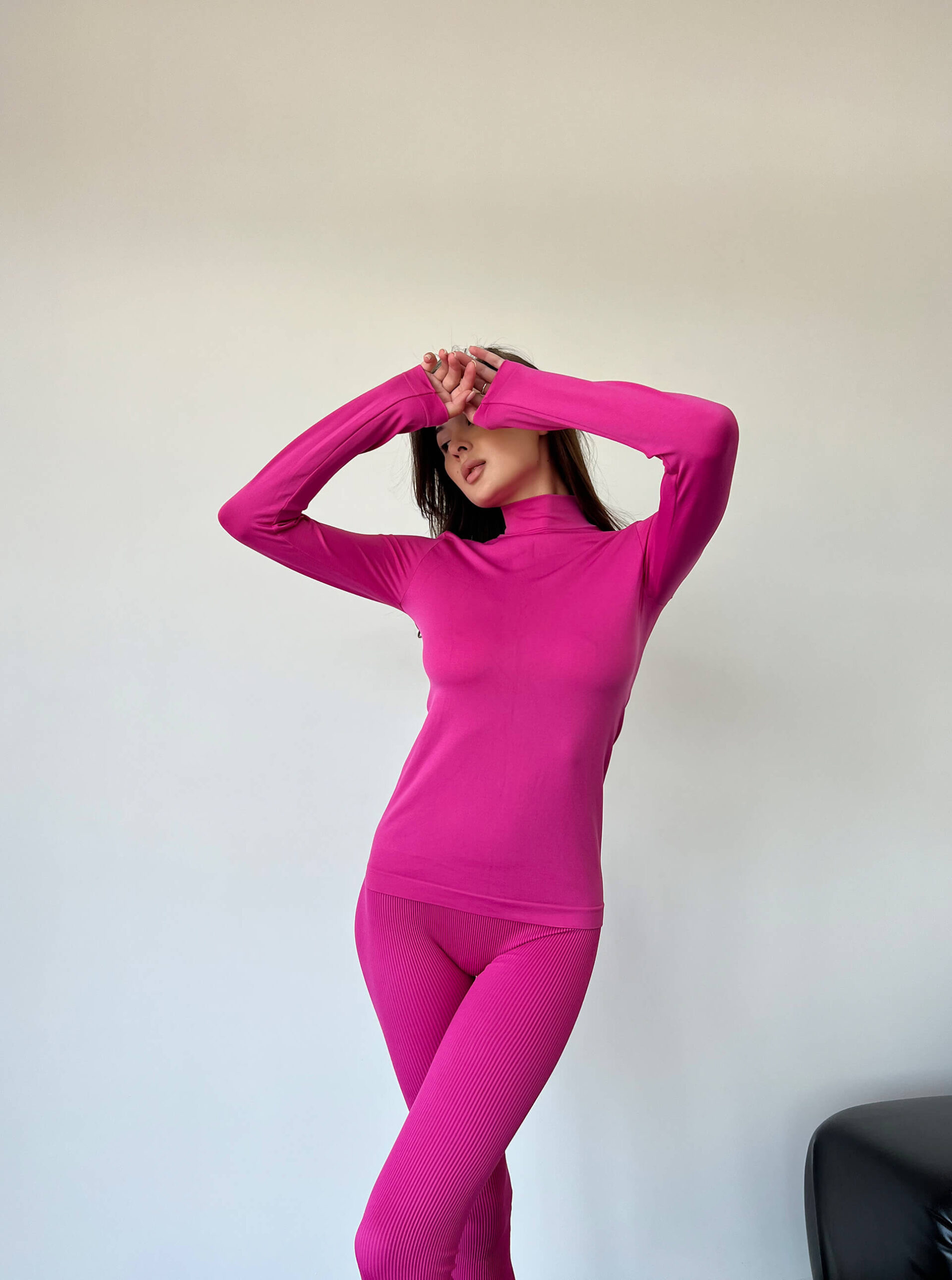Komplet, który obejmuje leginsy i golf, idealnie nadaje się zarówno do uprawiania sportu, jak i na co dzień.