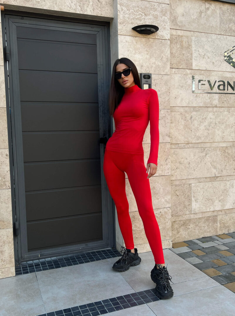 Komplet, który obejmuje leginsy i golf, idealnie nadaje się zarówno do uprawiania sportu, jak i na co dzień.